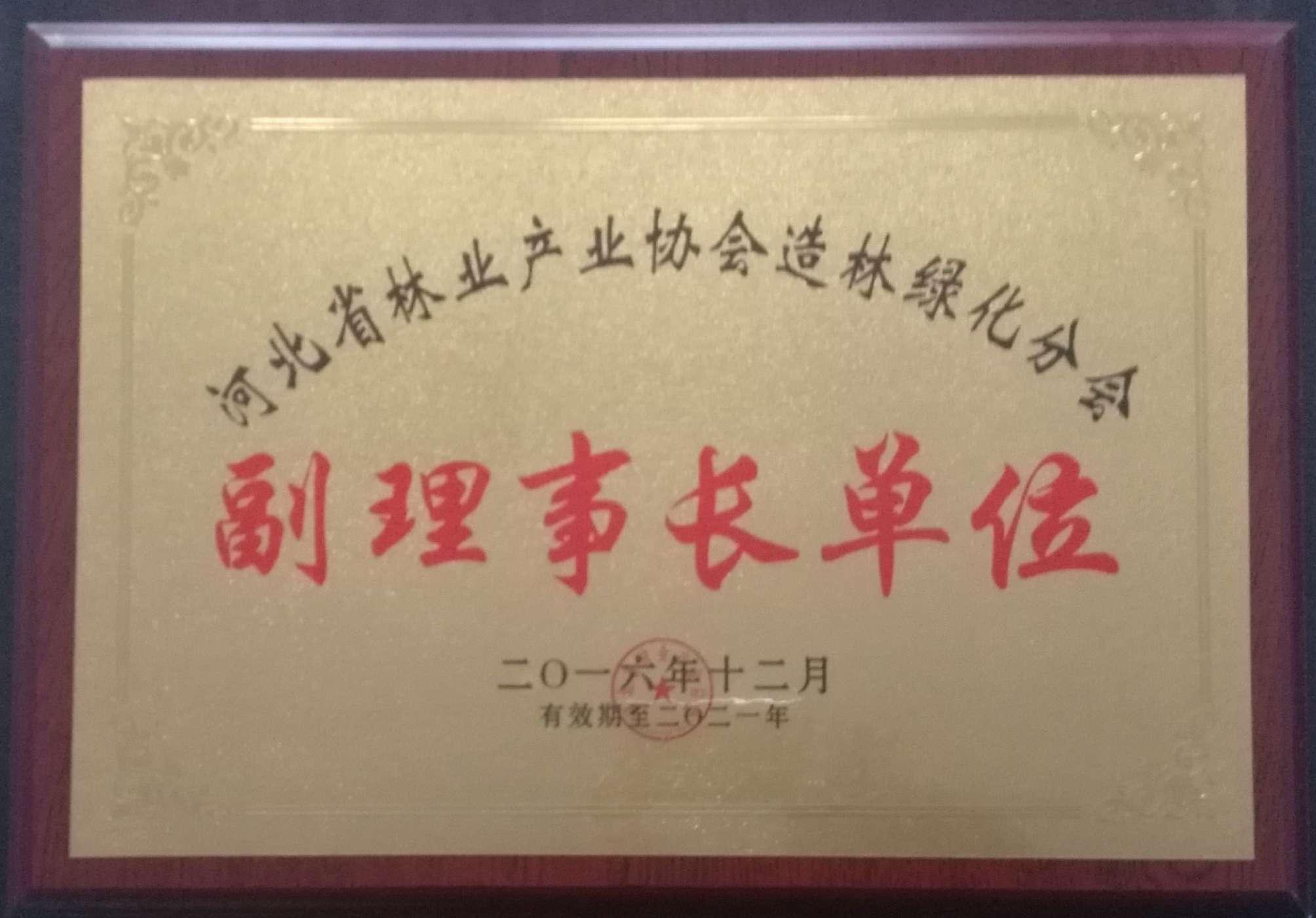 2016年12月,河北一森園林綠化工程股份有限公司榮獲河北省林業(yè)產(chǎn)業(yè)協(xié)會(huì)副會(huì)長單位和河北省林業(yè)產(chǎn)業(yè)協(xié)會(huì)造林綠化分會(huì)副理事長單位!