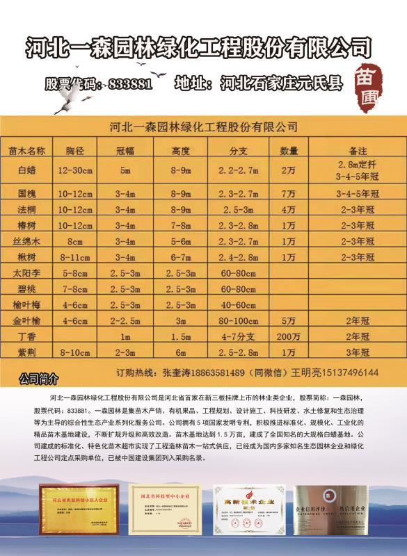 此次會議由河北省林木種苗協(xié)會主辦,一森園林公司承辦,支持媒體有《中國花卉報(bào)》、《中國綠色時(shí)報(bào)》和元氏電視臺,參加會議的技術(shù)專家有河北省科技廳農(nóng)村處處長徐成、河北省林業(yè)和草原局國有林場和林木種苗管理處處長張錦成、河北省林業(yè)和草原局科技處副處長劉新、石家莊市科技局農(nóng)村處處長高少軒、石家莊市科技局市科技局法規(guī)處副處長趙春杰、元氏縣科技局局長李旭樓、河北省林木種苗協(xié)會會長汪民、協(xié)會副會長、河北一森園林綠化工程股份有限公司董事長耿軍林、專委會主任河北農(nóng)業(yè)大學(xué)園林旅游學(xué)院院長黃大莊、副主任委員河北農(nóng)業(yè)大學(xué)林學(xué)院教授、博士生導(dǎo)師楊敏生、河北省林業(yè)和草原科學(xué)研究院黨委書記、教授級高工王玉忠等人。